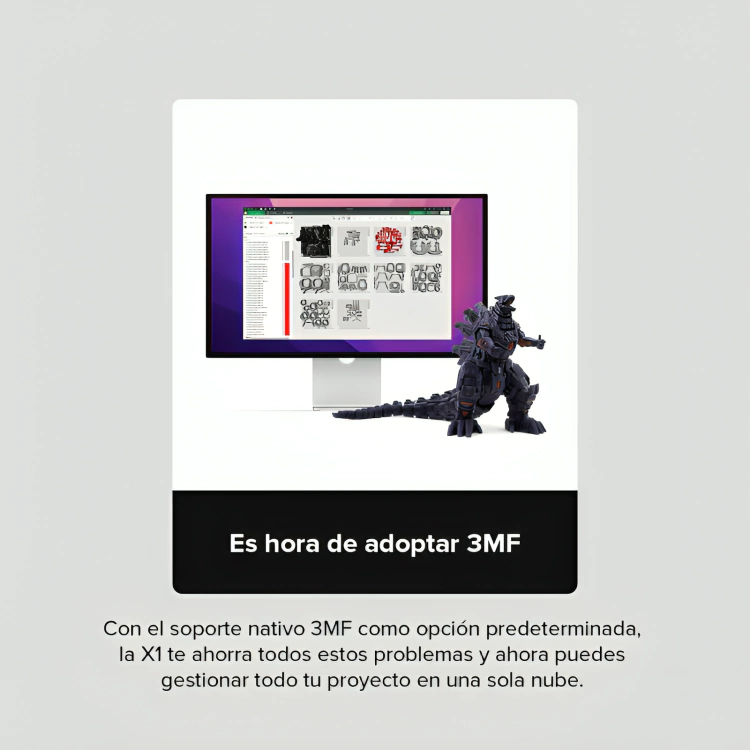 Con su estructura cerrada, sistema Core XY y calibraciones automáticas, la X1 Carbon Combo está preparada para trabajar tanto con filamentos estándar como con materiales técnicos reforzados con fibra, manteniendo una calidad impecable en cada pieza.
