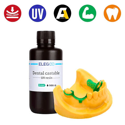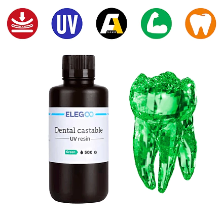 Descubre la innovación con Elegoo Dental Castable Resina 500g, diseñada para revolucionar la fundición de modelos con tecnología 3D