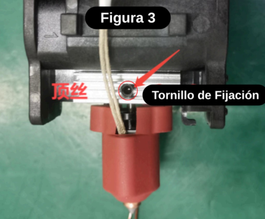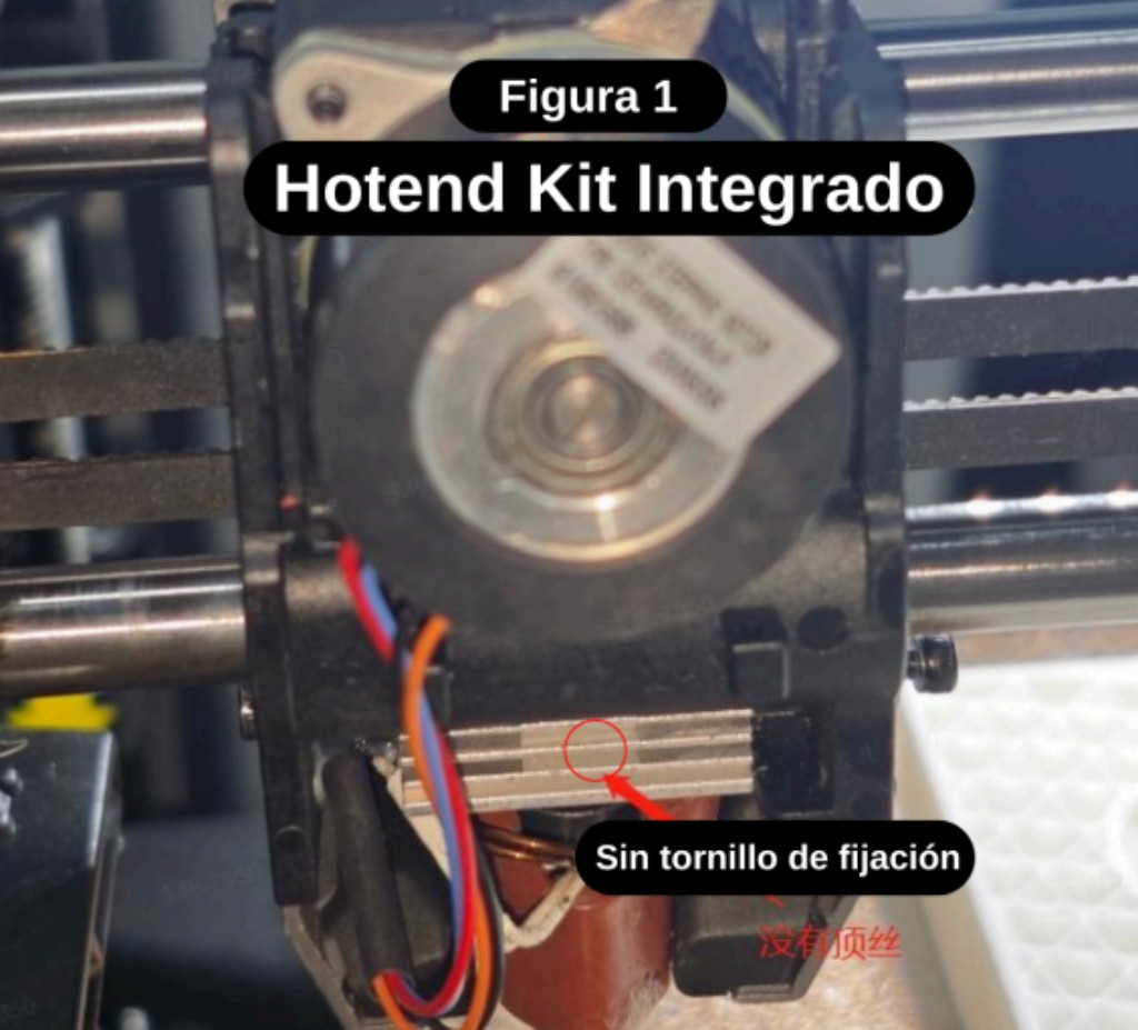 A simple vista, el kit de hotend integrado no tiene tornillos de fijación en la posición del disipador de calor (Figura 1), mientras que el conjunto de hotend independiente sí los tiene. Como se muestra en las figuras 2 y 3.