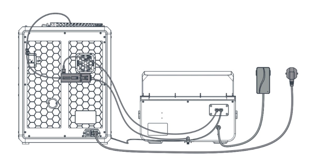 Por otro lado, los equipos Serie K1 cuentan con una cubierta en la parte superior que sirve para la utilización de materiales como el ABS. Al colocar el kit este mismo no se puede colocar correctamente ya que los tubos de teflón y parte del sistema pasa por arriba del equipo de la siguiente manera.